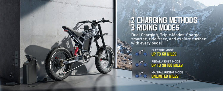 Introducing the ultimate electric dirt bike built for power, speed, and adventure. With a robust 3000W motor and a high-capacity 60V 30Ah battery, this e-bike delivers thrilling performance for both off-road trails and city streets. Whether you're climbing hills, cruising through rugged terrain, or speeding through your daily commute, this bike is engineered to exceed expectations.