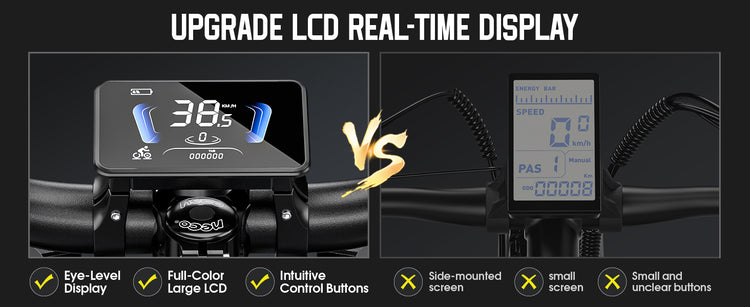 Includes charger, key ignition, and LCD display for speed, battery, and trip info.