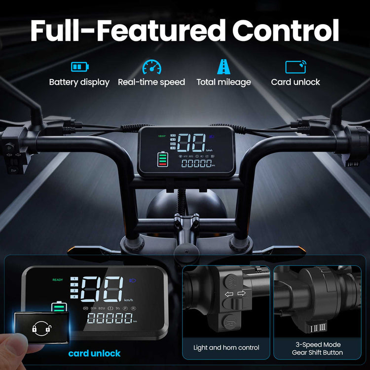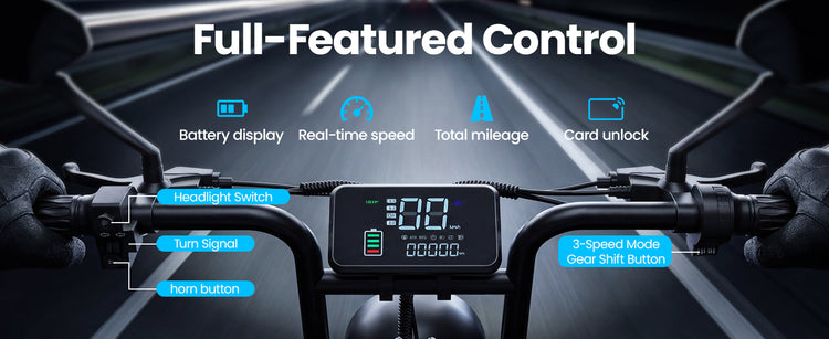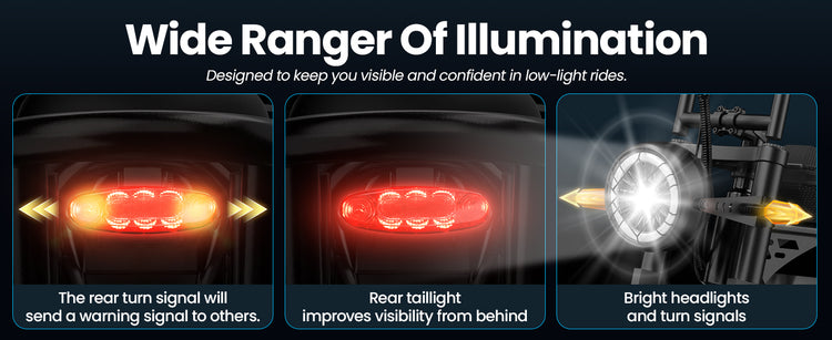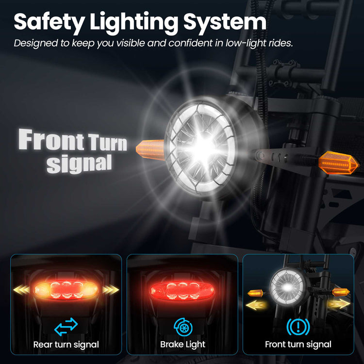 • Full Lighting System: Includes bright LED headlight, brake light, and front & rear turn signals for maximum visibility and safety in traffic.
