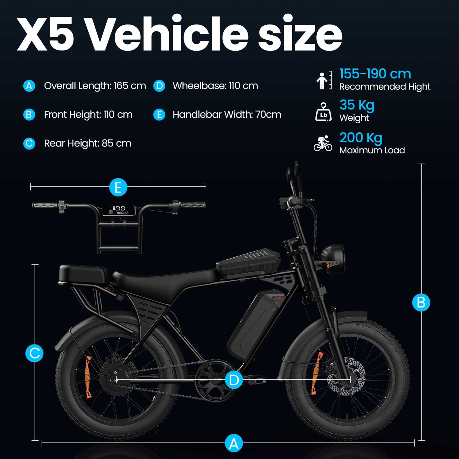 • Tyres: 20" x 4.0" Fat Tyres