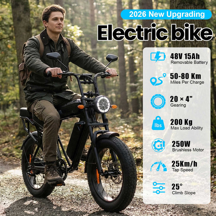 • Motor: 48V 250W High-Torque Hub Motor (75 Nm)
