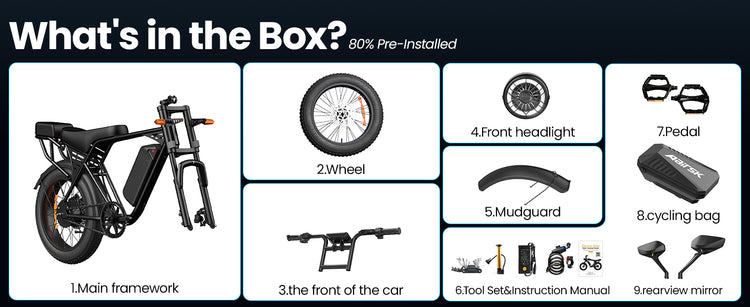 Your bike arrives with the battery, charger, NFC cards, and an easy-to-follow assembly kit. The included frame storage bag, user manual, and basic tools get you on the road in no time.