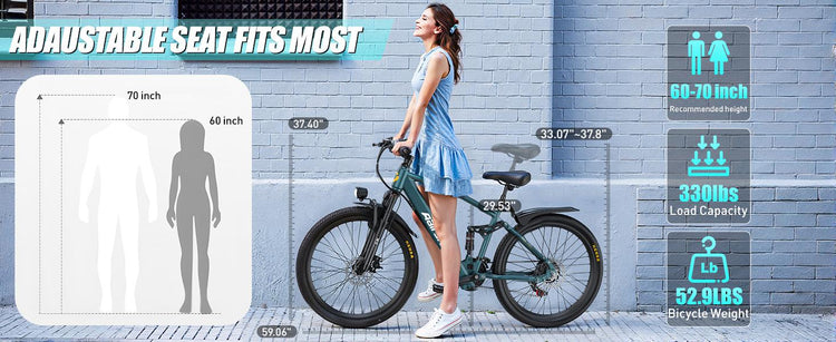 Built to handle rough and uneven surfaces, the integrated dual suspension absorbs impacts for a stable, comfortable ride—whether on paved streets or rugged trails.